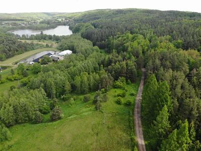 9Sprzedam działkę pod zabudowę na szczcie lekkiego pagórka górującego nad stawem (staw nie jest częścią działki) we ...